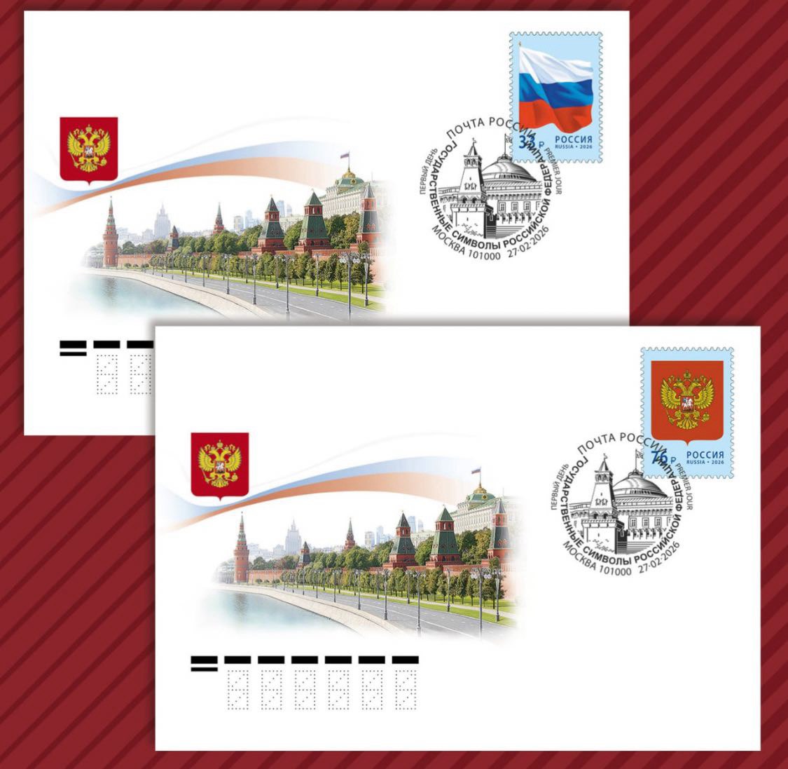 Выпуск марок с гербом и флагом продолжает традицию филателистического отражения государственной символики. Ранее на марках появлялись двуглавый орёл, триколор, исторические варианты флага, а также гербы регионов и городов. Такие выпуски востребованы не только среди коллекционеров, но и среди тех, кто отправляет официальную корреспонденцию или хочет подчеркнуть патриотический характер послания.